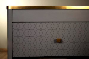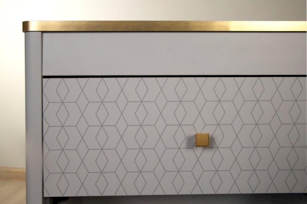 Принт на фасадах ящиков комода в виде геометрического орнамента создан нашими дизайнерами вручную. Рисунок нанесен при помощи технологии УФ-печати. Принты не выцветают со временем и устойчивы к механическому воздействию