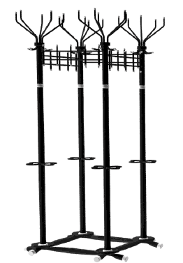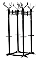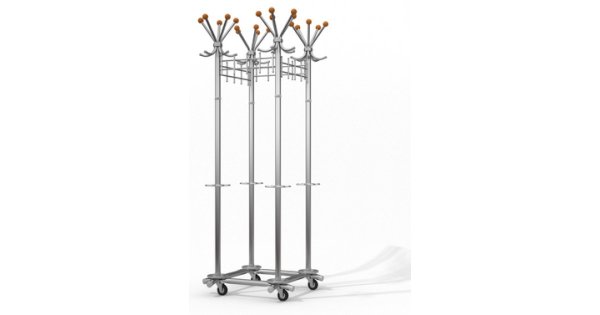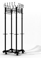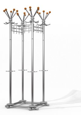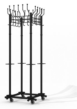 Вешалка выполнена из оцинкованной стали с полимерным покрытием. Крючки вешалки выполнены из трубы диаметром 10 мм. Вешалка поставляется в разобранном виде, в картонной таре. Эта модель вешалки может использоваться как фрагмент для обустройства гардеробных комнат.