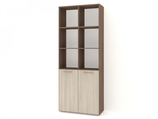 Применение задней стенки из ЛДСП (в ячейках с фасадами) позволяет использовать данный стеллаж для зонирования пространства (чтобы предотвратить опрокидывание, необходимо обеспечить крепление стеллажа к стене).
