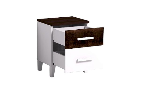 Прикроватная тумба Норвуд 41 – необходимый предмет мебели в современной спальне. Два ящика глубиной 300 мм оснащены шариковыми направляющими полного выдвижения, что обеспечивает плавность и бесшумность хода. Опоры со скосом позволят без труда делать уборку в спальне. Яркие акценты белоснежной тумбы - контрастная столешница толщиной 22 мм и фасад верхнего ящика в декоре Орех Шоколадный.