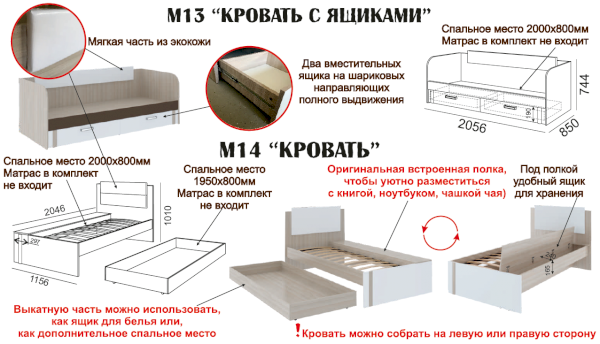 - Необычная кровать М14 со столешницей и большим выкатным ящиком.