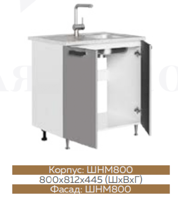 Барная стойка БС-6 ШНМ800 Шкаф нижний под мойку Графит софт/Белый глянец холодный
