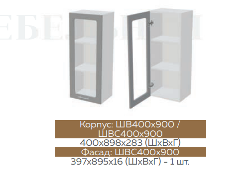 ШВС1Д600/900 Шкаф верхний со стеклом