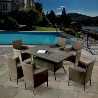 В составе комплекта: стол и 6 кресел. Первоклассная лоза из синтетического ротанга бежевого цвета стойкая к любым погодным проявлениям. Крепкий каркас из стали с полимерным антивандальным покрытием и отличным качеством сварки. Изделие сплетено вручную нашими мастерами под жестким контролем качества на каждом этапе производства. Лоза максимально приближена по рельефу и текстуре к естественному материалу. Подходит для использования на улице и внутри помещения в любую погоду. Не боится влаги, прямых солнечных лучей и холода.