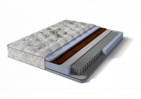 Матрас на основе блока независимых пружин. Cнимает нагрузку с позвоночника и качественно поддерживает область поясницы. Кокосовая койра обеспечивает жесткость, а современный гипоаллергенный материал Foam придает комфорт.
