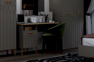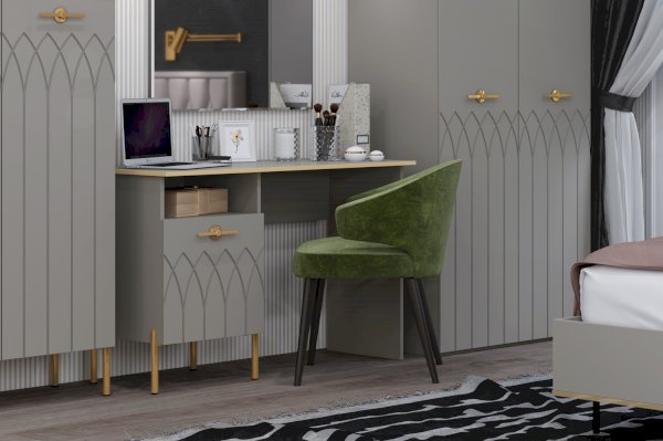 Благодаря продуманной конструкции модуль удобен для учебы или работы, столешница шириной 1220 мм позволит разместить все необходимое, включая компьютер. Зона для хранения письменных принадлежностей оформлена в виде открытой ниши и закрытого отделения с дверью.