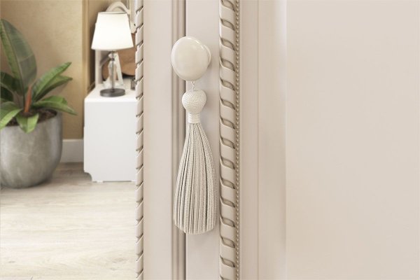 Комод «Белла» вместителен и занимает при этом минимум пространства. Главной «изюминкой» комода стали декоративные мягкие кисти.