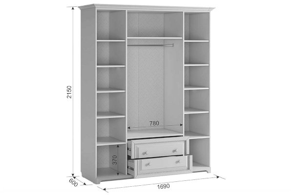 Размер четырехстворчатого шкафа: 1690х2150х600 мм