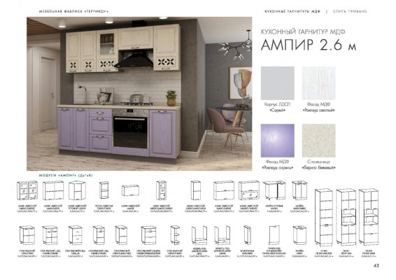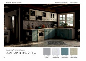 Кухня Ампир изговаливается также в цветах серый/роялвуд сирень; серый/роялвуд бирюза; серый/роялвуд голубой. Модули в этих цветовых решениях вы сможете найти в нашем интернет-магазине.