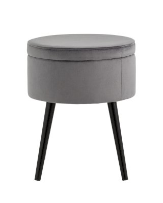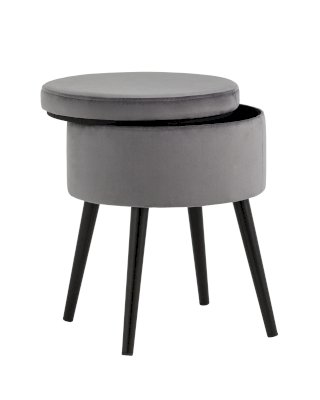 Компактный пуф с ящиком в лаконичном стиле. Мягкая обивка выполнена из износостойкого велюра, тактильно приятный и долговечный материал. Металлические ножки черного цвета высотой 26 см выдерживают нагрузку до 80 кг. Под сидением имеется ящик для хранения мелочей, крышка полностью съемная. Подпятники в основании ножек делают пуф более устойчивым и предотвращают скольжение.