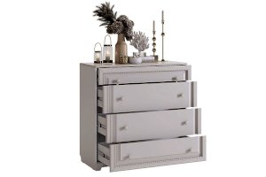 Нежный и воздушный комод «Белла» станет незаменимым элементом интерьера Вашей спальни. Комод «Белла» вместителен и занимает при этом минимум пространства. Столешницу из МДФ украшает фрезеровка. Главной «изюминкой» комода стали декоративные мягкие кисти.