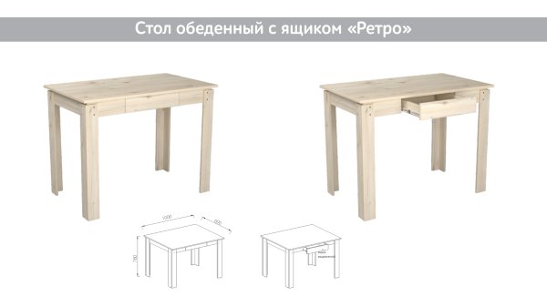 Обеденный стол с ящиком Ретро (Марибель) - за 6 914 руб. в Видном. Купите на сайте vidnoe.onlinemarketmebeli.ru или по телефону 8(800)505-30-63 уже сегодня! Уточнить наличие, комплектацию, актуальную цену можно бесплатно у менеджера ежедневно. Закажите Обеденный стол с ящиком Ретро (Марибель) до конца акции! Доступна покупка в кредит, рассрочку. Доставим со склада или на заказ.