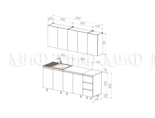 Высота верхних шкафов: 718 мм