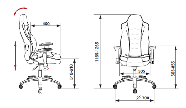 Высота кресла: 1165-1265