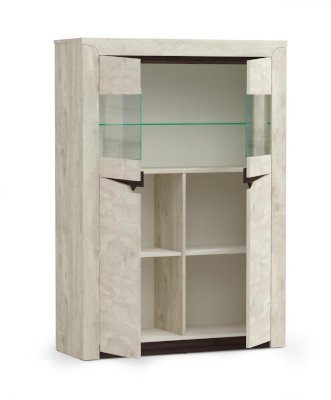 Визуально шкаф разделен на две части: верхняя – за стеклом, нижняя – глухая. В каждой части находятся по две полки: стеклянные в верхней части, из ЛДСП – в нижней. Две дверцы распахиваются навстречу друг другу. Высота шкафа небольшая – всего полтора метра, поэтому наверх вы вполне можете поставить комнатные цветы – поливать их будет удобно даже человеку небольшого роста. Если такой шкаф поставить в детской, то наверх можно убрать глобус, микроскоп или еще какие-то учебные пособия, которыми мы пользуемся не каждый день, но при необходимости можно легко достать. Если же шкаф стоит в гостиной или столовой наверх можно поставить какие-то элементы декора, которые украшают интерьер – вазу или статуэтку. За стеклом хорошо смотрятся посуда и книги, а за закрытыми дверями – все, что угодно.