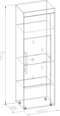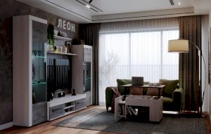 Если вы считаете, что хранить в гостиной посуду уже не модно, шкаф со стеклянной дверцей и стеклянными полками станет отличной витриной для дорогих и любимых фотографий и памятных вещиц. Стеклополки в обработке еврокромкой выдерживают до 10 кг каждая. Их можно декоративно подсветить с помощью светодиодной подсветки (в комплекте не поставляется, приобретается отдельно). Фасад перенавешивается на левую и правую сторону. Серебристая стильная ручка из массива дерева и серое тонирование стекло фасада вносят смелые дизайнерские штрихи в восприятии актуального декора "под бетон".