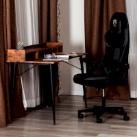 Компьютерное кресло iBear - идеальное сочетание привлекательности, эргономичности и функциональности. Стильная модель будет удачно смотреться как в офисе, так и в рабочем кабинете вашего дома. 5-лучевая крестовина диаметром 640 мм устойчива, прочна и имеет долгий срок службы. Анатомическая спинка с каркасом из металлической трубы толщиной 1.2 мм и наполнителем из пенополиуретана плотностью 25 кг/м3 легко подстраивается под контуры тела, не деформируется со временем. Сиденье изготовлено из многослойной фанеры толщиной 12 мм и пенополиуретанового наполнителя с внешним слоем не менее 25 кг/м3 и внутренним слоем не менее 70 кг/м3. Компьютерное кресло обито износостойкой тканью черно-серого цвета, выдерживающей 20000 циклов на истирание по Мартиндейлу. Такой материал не требует сложного ухода, обладает отличными эксплуатационными качествами. Модель оборудована надежным газлифтом 3 класса с ходом 100 мм. Подлокотники с регулируемой мягкой накладкой и функцией реклайнера, механизм изменения высоты сиденья и угла наклона до 15 градусов с возможностью фиксации в рабочем положении, настраиваемый подголовник и поясничная подушка позволят принять комфортную позу, снять напряжение с позвоночника. Высококачественные полиамидные ролики с геймерским дизайном диаметром 50 мм дополнительно прорезинены для предотвращения повреждения напольного покрытия, отлично подходят для использования на паркете и ламинате. Элегантное кресло iBear отличается повышенным комфортом, легкостью в уходе и презентабельным внешним видом, удивит владельца своей долговечностью, функциональностью и надежностью. Модель поставляется в разобранном виде. Необходима простая сборка по прилагаемой инструкции. Максимальная нагрузка 120 кг.