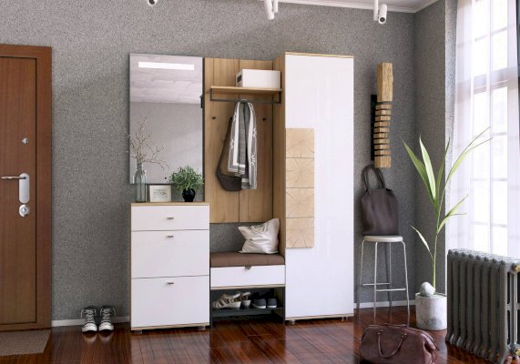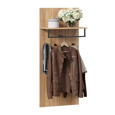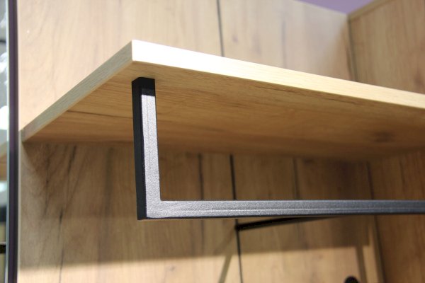- Под полкой закреплена вешалка-опора (штанга-менсолодержатель) для плечиков и 4 крючка