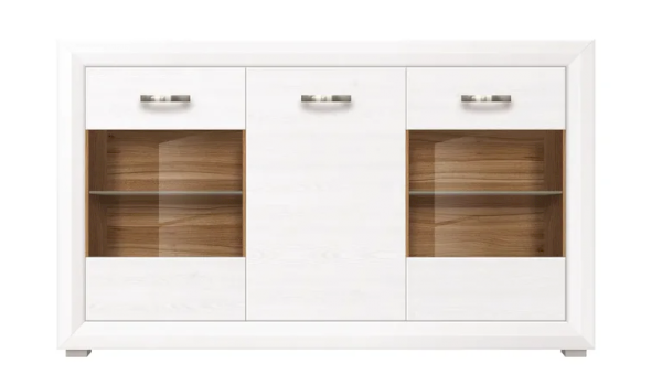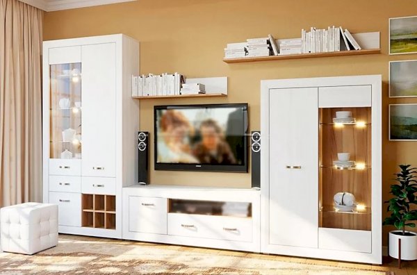 MALTA – коллекция мебели, состоящая из множества функциональных модулей, которые позволяют обустроить любую комнату. Великолепные белоснежные фасады коллекции Malta удачно контрастируют со вставками из «орех лион», продолговатые  металлические ручки добавляют изящества, а подсветка стеклянных полок выгодно подчеркивает древесную структуру дерева.
