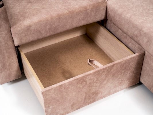 • Выкатной ящик для белья располагается в одноместной секции. Ящик выполнен из ламинированной плиты (ЛДСП), что исключает повреждение белья.