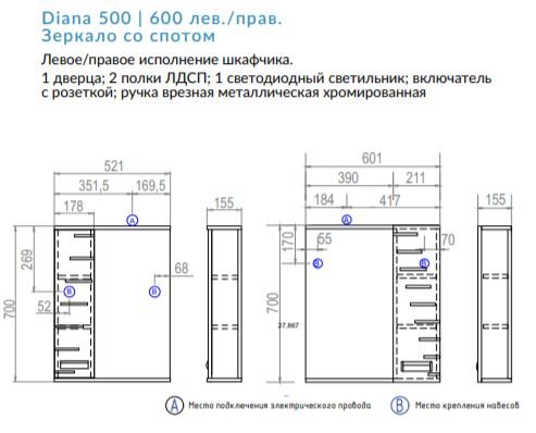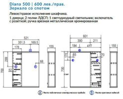 Зеркало Diana левое 500 со спотом