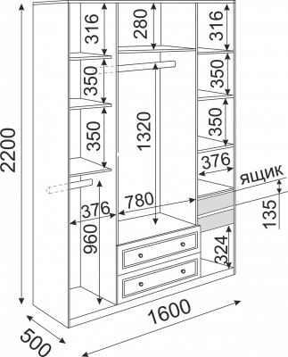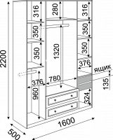 | Наполнение шкафа | выдвижные ящики / зеркало / штанга |