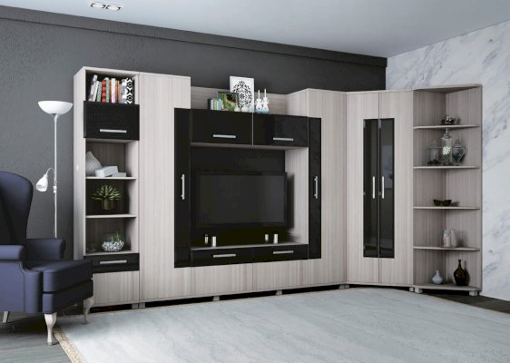 Фасады: ЛДСП 16 мм. Чёрное стекло с фацетом.