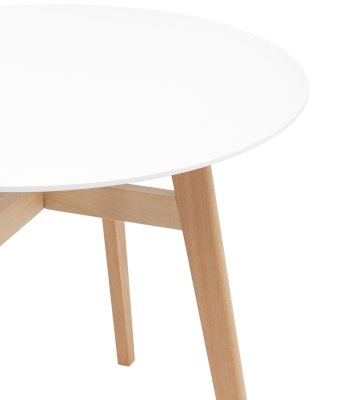 Оригинальный стол в современном стиле станет прекрасным дополнением кухни или обеденной зоны. Круглая столешница выполнена из МДФ. Ножки стола изготовлены из массива дерева.