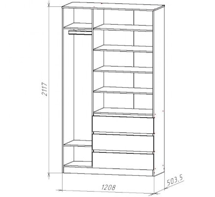 | Наполнение шкафа | выдвижные ящики / штанга |