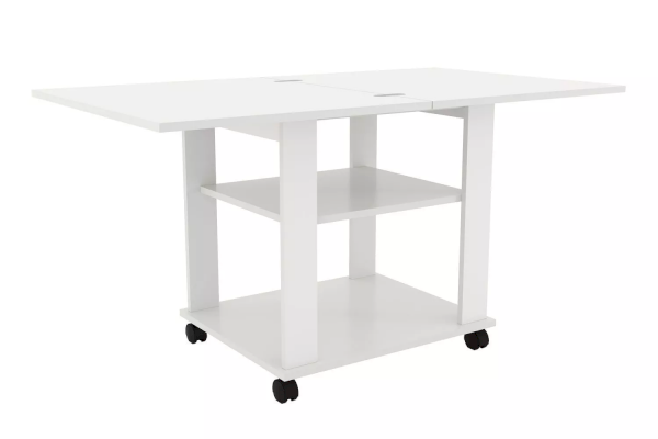 Благодаря поворотному механизму и подвижному соединению столешниц его можно раскладывать для увеличения площади. Если планируется частое использование мебели в различных комнатах, то колеса облегчат перемещение. Все механизмы конструкции обладают простым использованием.