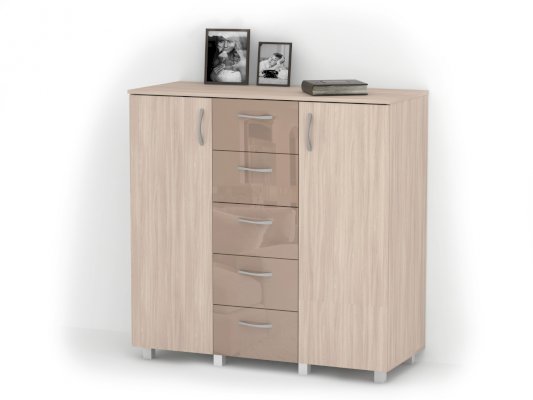 корпус ЛДСП - Ясень Шимо светлый, фасады ЛДСП - Ясень Шимо светлый, фасады МДФ - Мокко глянец.