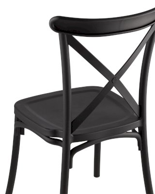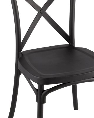 Стул из прочного пластика в классическом дизайне. Спинка украшена перекрестием. Максимальная нагрузка - до 160 кг. Для изготовления использован прочный пластик, ударопрочный, термостойкий. Стул подойдет как в обеденную зону, так и в беседку или кафе.