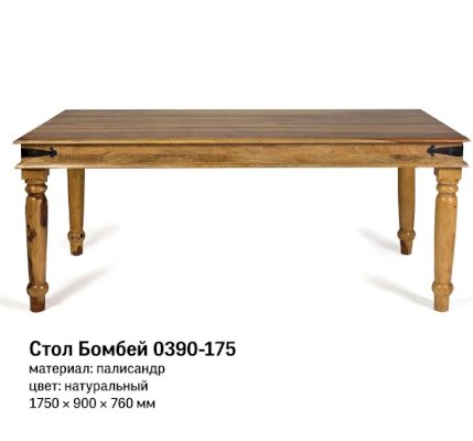 Большой обеденный стол из коллекции BOMBAY, выполненный из массива палисандра, не только задаст тон вашему интерьеру, но и добавит уюта и комфорта месту, где можно приятно провести время с семьей и друзьями. Качественная ручная работа, элегантные резные ножки, винтажная фурнитура из черного металла и разнообразие уникальных оттенков древесины палисандра создают неповторимый облик изделия. Размеры стола позволяют с удобством разместить от шести до восьми человек. Массив палисандра, обработанный прозрачным лаком, обладает повышенной прочностью, долговечностью, не требует специального ухода и будет долгое время радовать вас своим первоначальным видом. Стол отлично гармонирует с мебелью из коллекции BOMBAY, поставляется в разобранном виде.