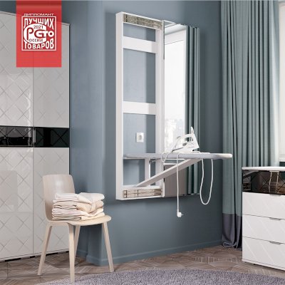 Гладильная доска-купе Смарт — бесценная находка для тех, кто стремится максимально рационализировать пространство. Она крепится к стене, что делает эксплуатацию особенно удобной. После глажки вы легко скроете доску за дверцей, превратив всю конструкцию в декоративный элемент интерьера. Механизм способен выдержать вес человека, доска прочно зафиксирована
