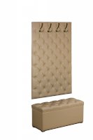 Элегантная серия мебели для прихожей  Мишель не оставит никого равнодушным. Мягкая стеновая панель  с каретной стяжкой Мишель  наполнит  уютом вашу прихожую, а пуф Мишель дополнит  интерьер и будет очень функциональным, сиденье пуфа открывается, под сиденьем расположена удобная ниша. Стеновая панель выполнена в классической каретной стяжке и имеет 2 размера ширины 75 см и 95 см, к данным стеновым панелям предлагается пуф, также  шириной 75 и 95 см. Можно приобрести как полный комплект так и каждый элемент отдельно.