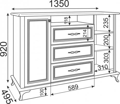 • Размер:(Ш×Г×В): 1350х495х920 мм