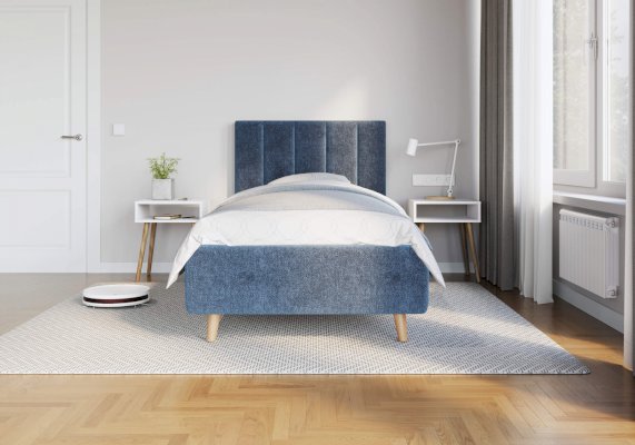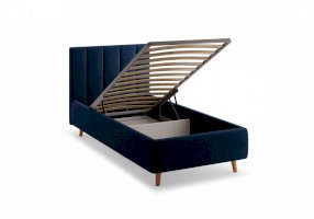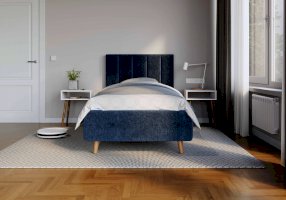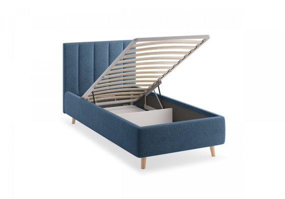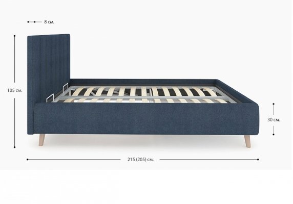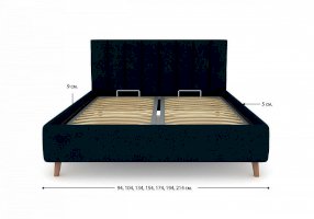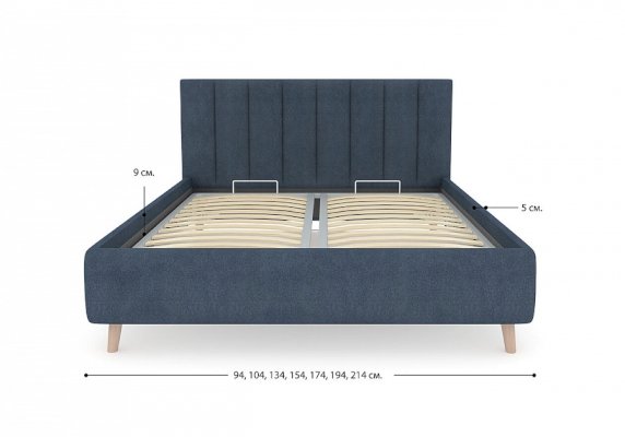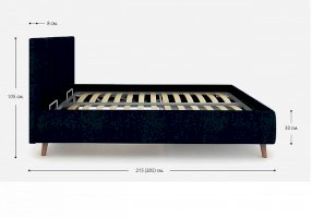 Кровать Alma подойдет для современных интерьеров спален, а благодаря деревянным ножкам впишется в стиль ретро, скандинавский или минимализм. В комплект входит металлическое основание с деревянными ламелиями, а при желании кровать Alma может быть укомплектована подъемным механизмом с бельевым ящиком.