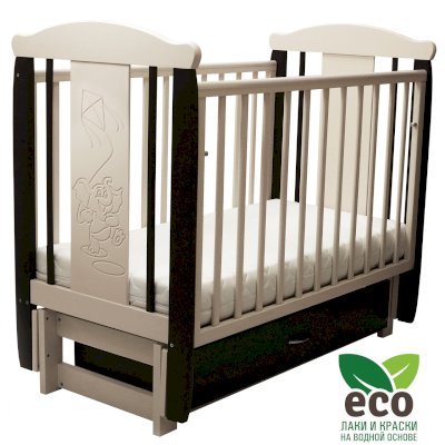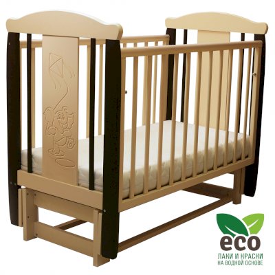 варианты цветовых решений Кроватка "Соня 05" имеет механизм качания продольный маятник. Механизм качания фиксируется. Возможен вариант кровати с ящиком.