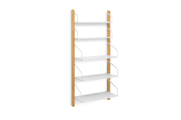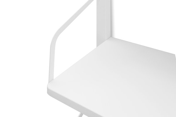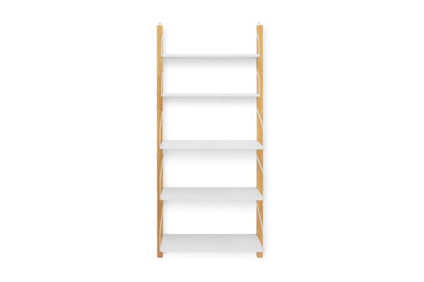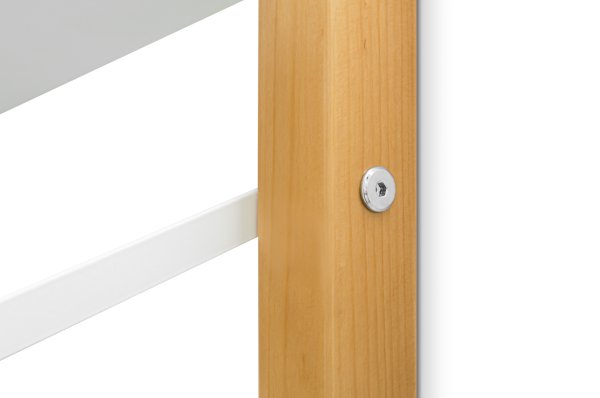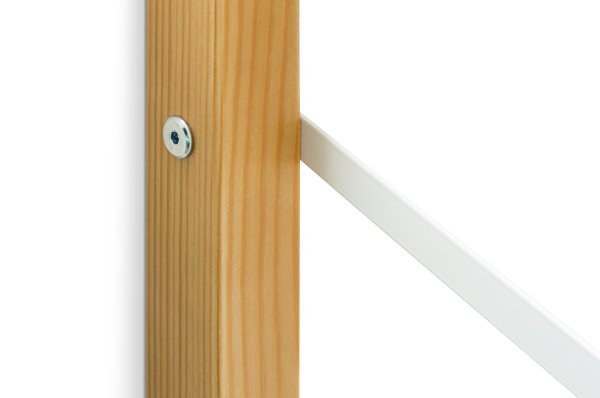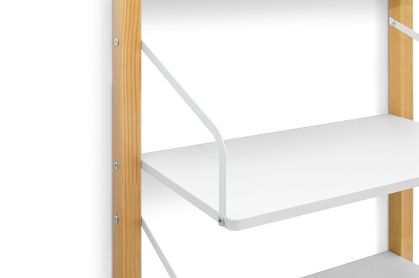 Стеллаж изготавливается из массива сосны, покрытого эмалью/лаком на водной основе, полки из ЛДСП. Полкодержатели металлические, покрыты порошковой краской.