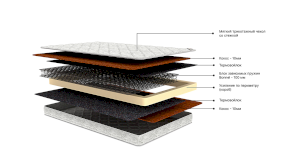 Наполнитель: ППУ, зависимый пружинный блок Bonnel, термовойлок, кокос