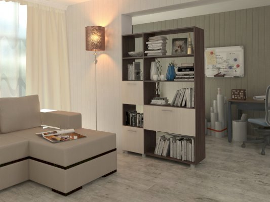 Данное изображение представлено в следующих цветах ЛДСП: корпус - Ясень Шимо тёмный, фасады - Дуб молочный.
