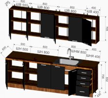 Габариты кухни 2500 мм (ШхВхГ):