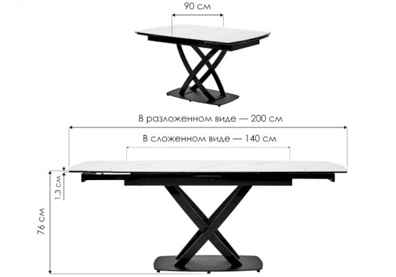 | Длина разложенного столика, мм | 2000 |