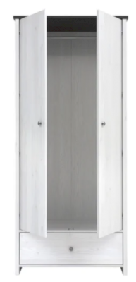 Платяной вместительный шкаф разделен на 2 отделения: отделение со стационарной металлической штангой для одежды и выдвижной ящик.