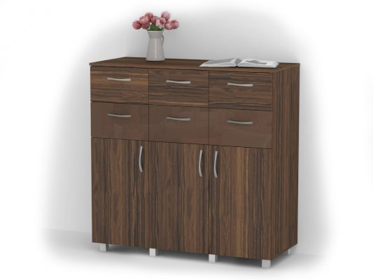 Данное изображение представлено в следующих цветах: корпус ЛДСП - Маслина Севилья тёмная, фасады ЛДСП - Маслина Севилья тёмная, фасады МДФ - Капучино глянец.
