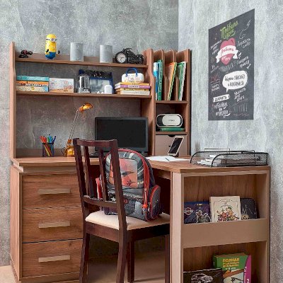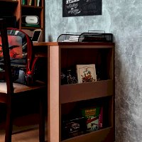 Увеличить площадь рабочего места для размещения книг, рабочих тетрадей и техники можно используя дополнительную консоль к модулю Nature 84 Cтол письменный. С внешней стороны приставного стола имеется дополнительная ниша для хранения. Угловой стол можно установить с любой стороны письменного стола, образуя тот угол, который подразумевает планировка комнаты. Ширину стола можно увеличить или уменьшить на 150 мм с шагом в 1 мм.