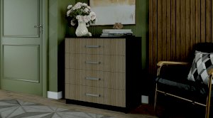 Модель комода Фиеста позволит разместить ваши любимые вещи благодаря четырем выдвижным ящикам. Изделие будет идеально смотреться в любом интерьере и любой комнате, ведь оно выполнено из ЛДСП классических цветов венге и лоредо. Пользоваться комодом очень удобно за счет эргономичных ручек.