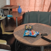 - Стол и табуреты на металлических ногах