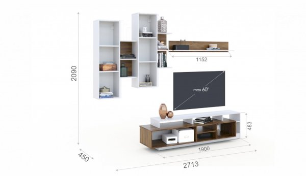 *Высота и ширина стенки зависит от расположения навесных модулей