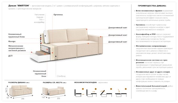 Диван Милтон (Империал) - за 60 776 руб. в Видном. Купите на сайте vidnoe.onlinemarketmebeli.ru или по телефону 8(800)505-30-63 уже сегодня! Уточнить наличие, комплектацию, актуальную цену можно бесплатно у менеджера ежедневно. Закажите Диван Милтон (Империал) до конца акции! Доступна покупка в кредит, рассрочку. Доставим со склада или на заказ.